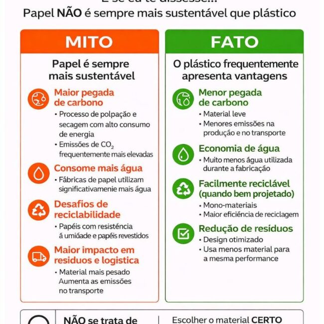 A discussão sobre sustentabilidade nas embalagens costuma ser simplificada em uma frase: “papel é melhor que plástico”. Mas a realidade é mais complexa.
